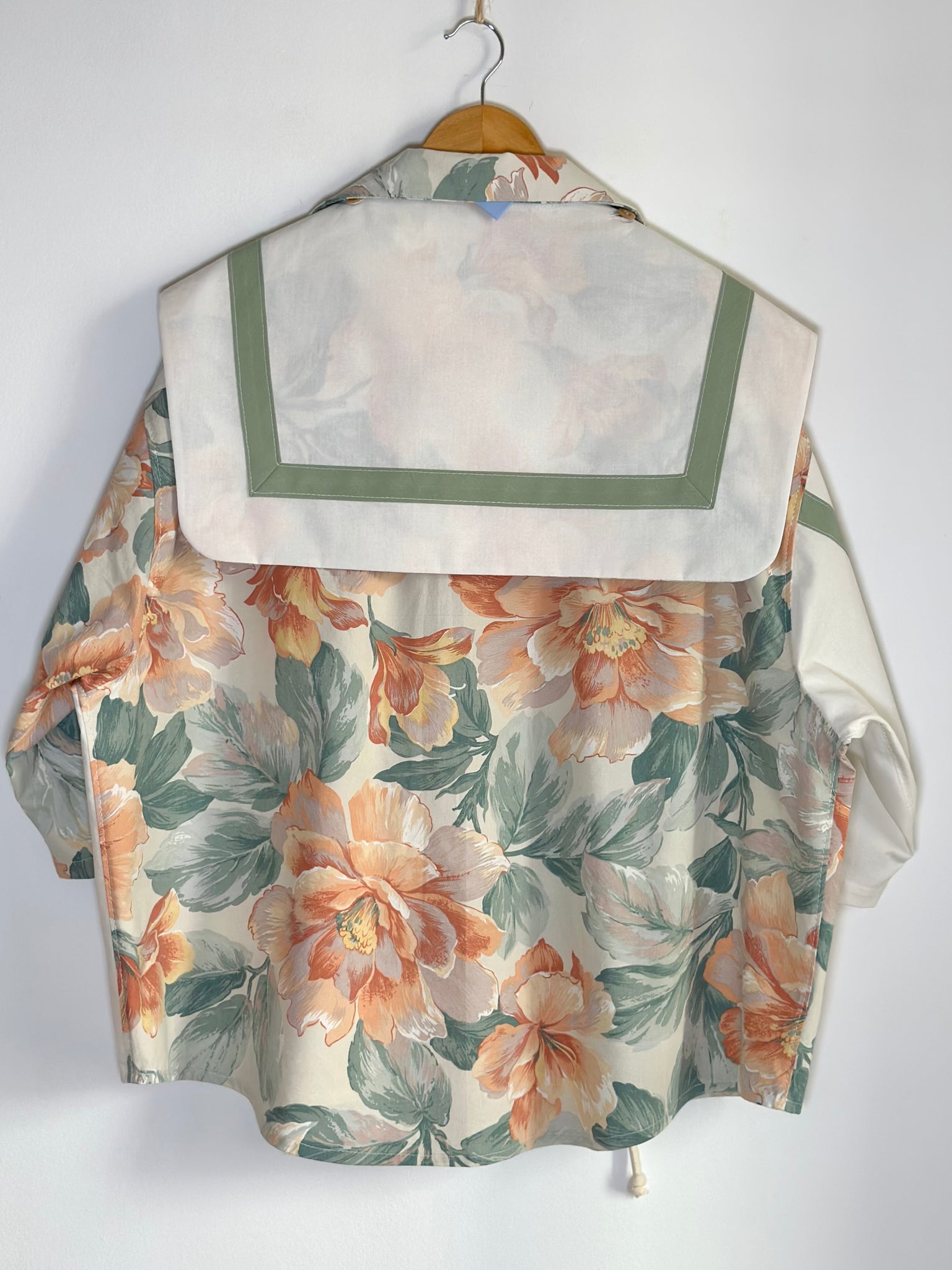 Chemise coupe oversize, confectionnée à partir de 2 draps de seconde main.