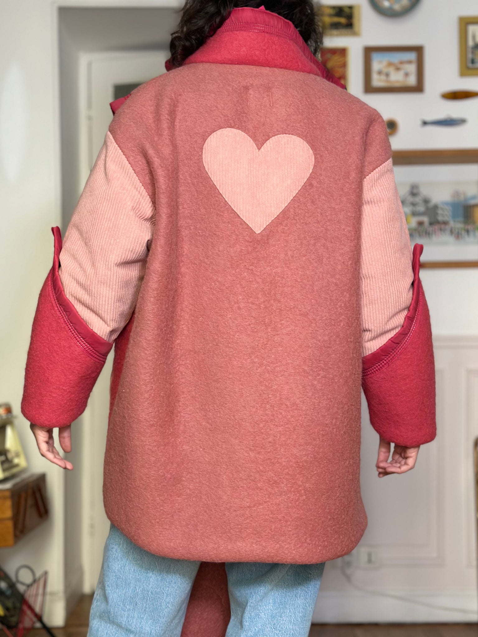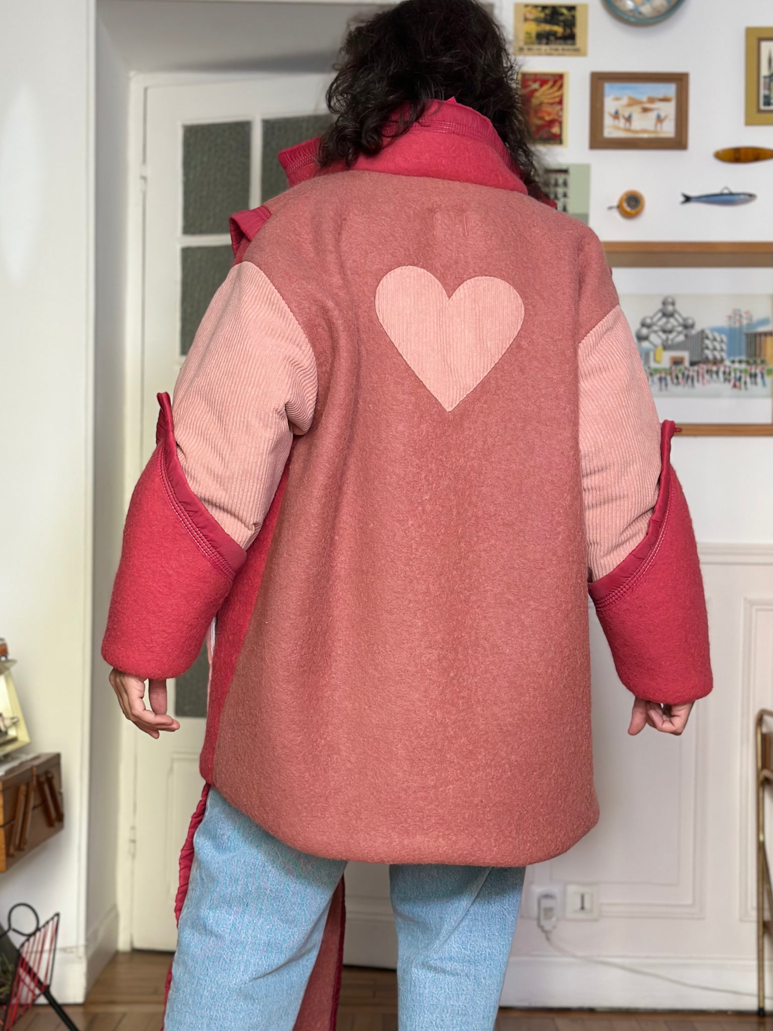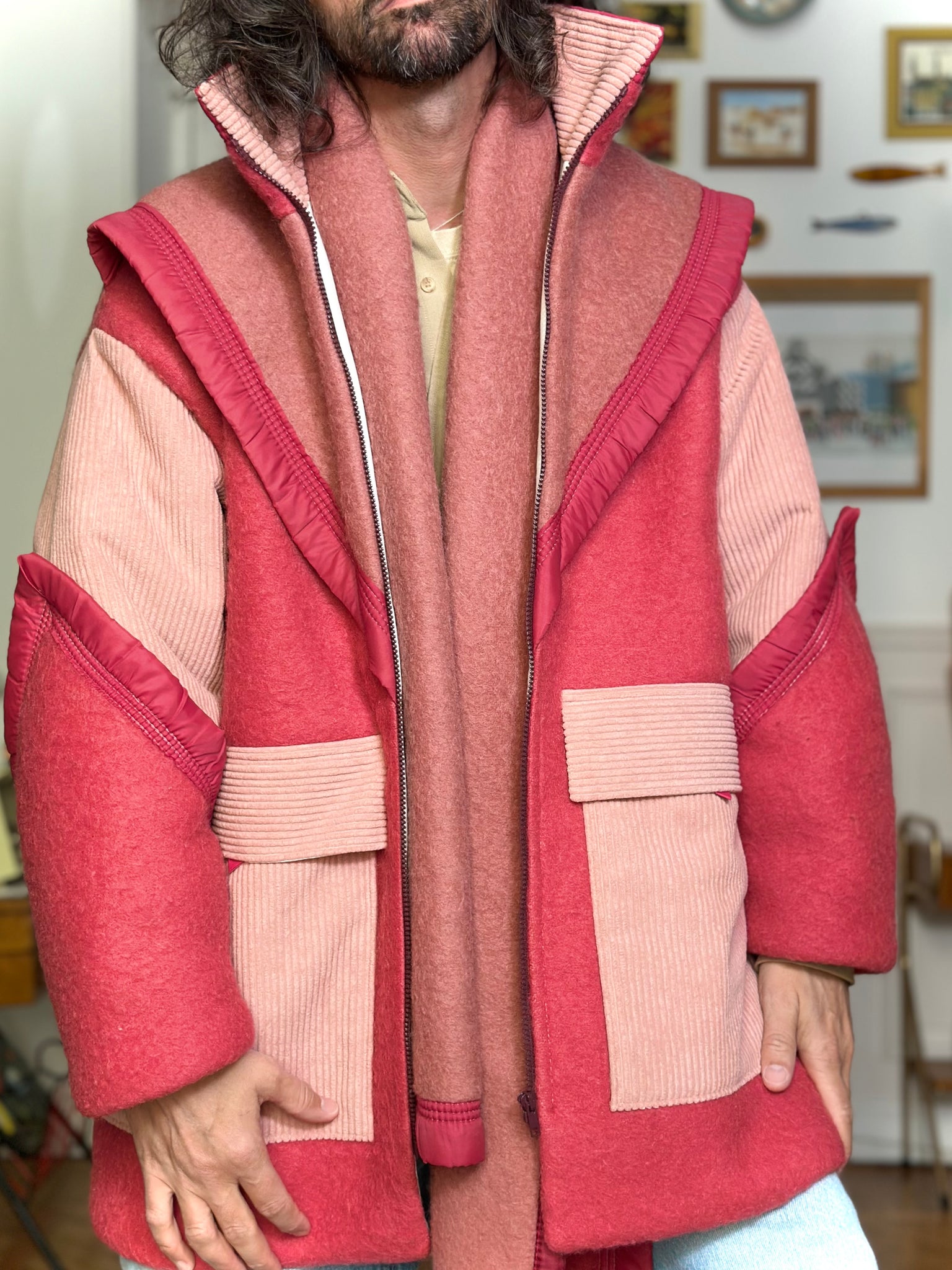 Upcycling : malgré le soin apporté au choix du matériau, quelques petites imperfections pleines de charme peuvent apparaître à certains endroits du vêtement.