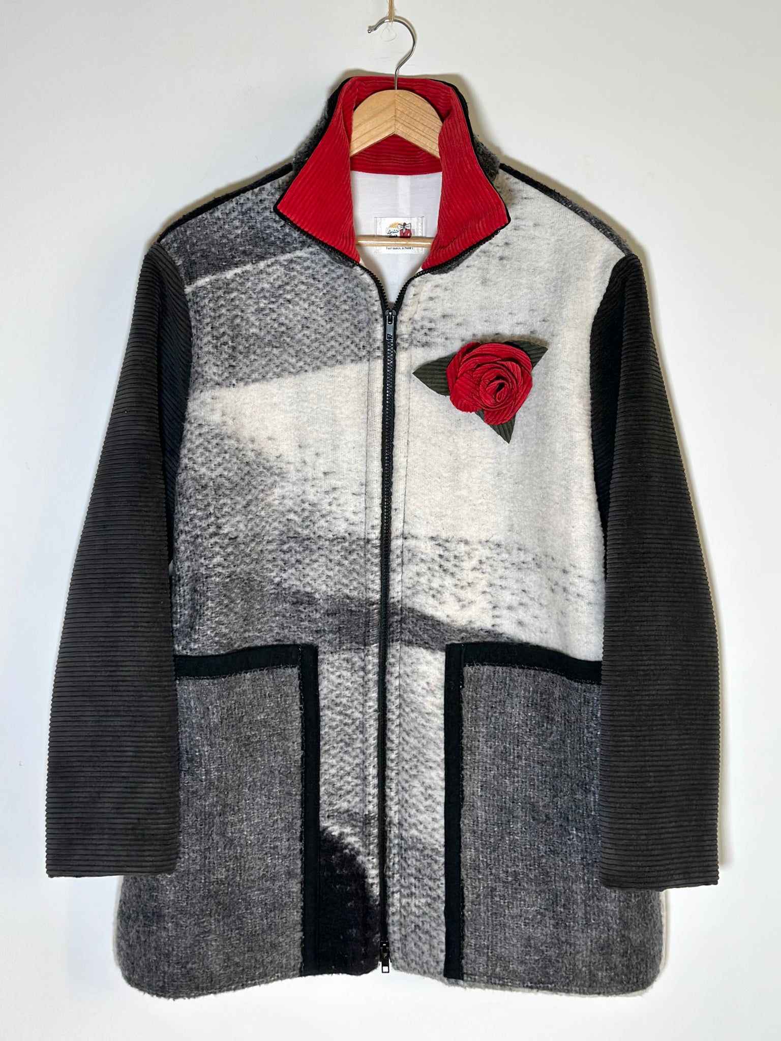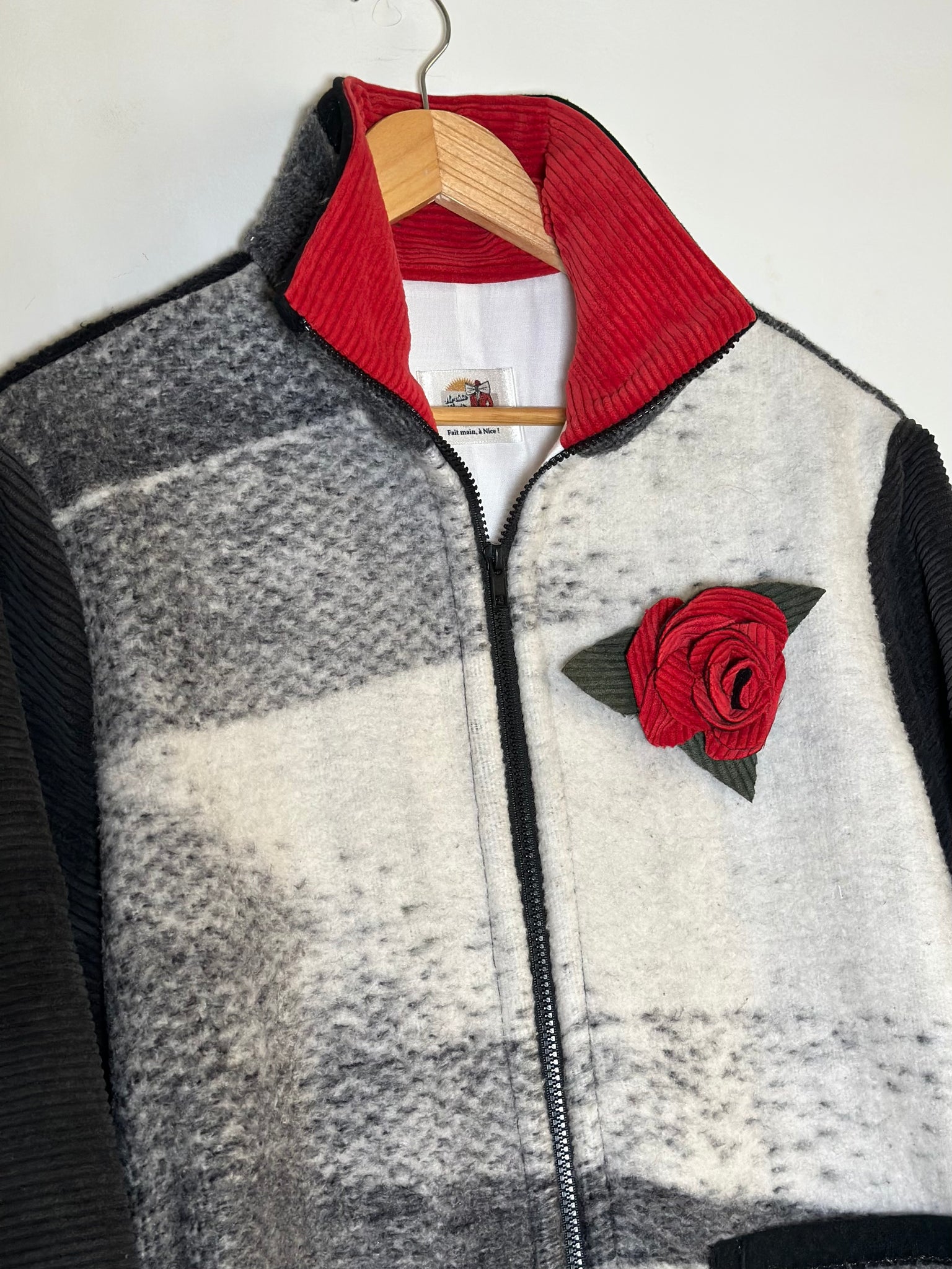 Manteau coupe 3/4 confectionné à partir d’une couverture en laine mélangée de seconde main.